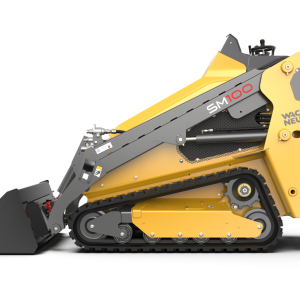 The stand-on SM100 is compact and narrow at 35.5", it will fit thru most gates and is easy to operate. The tracks provide great stability. Operator standing position provides far superior, 360 degree visibility compared to a conventional skidloader. At 35.5" wide this machine is a great option for most backyard gates.