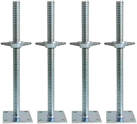 Scaffold jack is used to level a scaffold tower on uneven ground